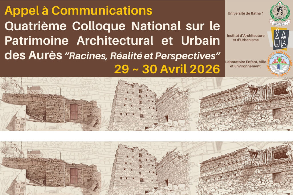 معهد الهندسة المعمارية والعمران قسم الهندسة المعمارية ينظم مخبر الطفل المدينة والبيئة (LEVE) الملتقى الوطني الرابع حول التراث المعماري والعمراني في الأوراس “الجذور، الواقع والآفاق”