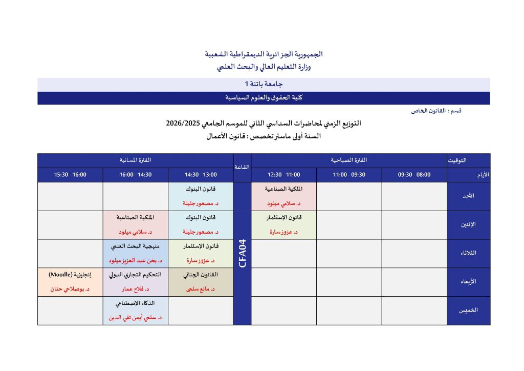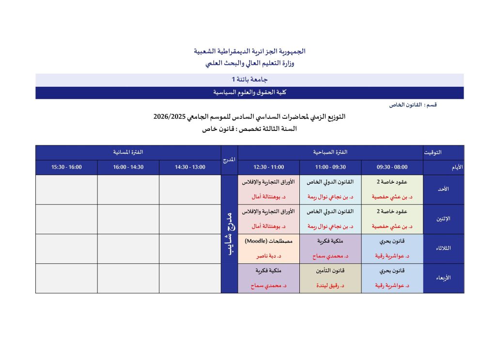 اللجنة العلمية لقسم القانون الخاص