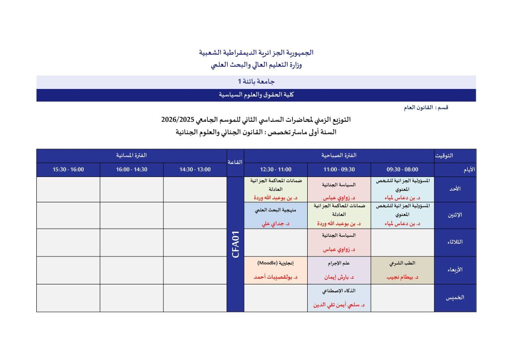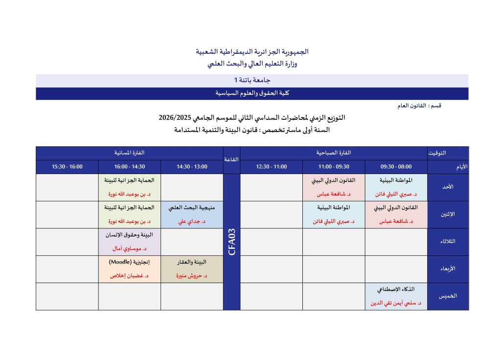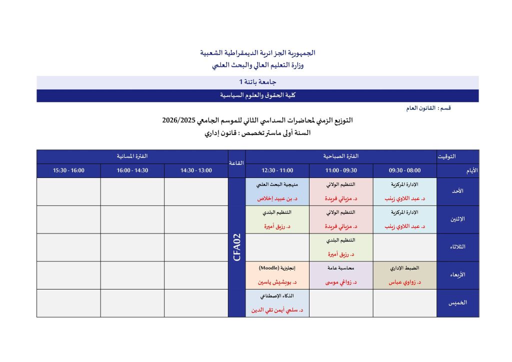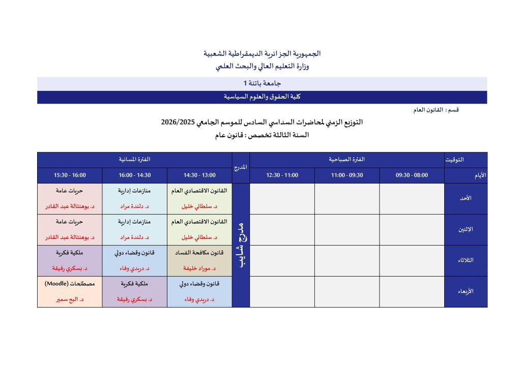 اللجنة العلمية لقسم القانون العام