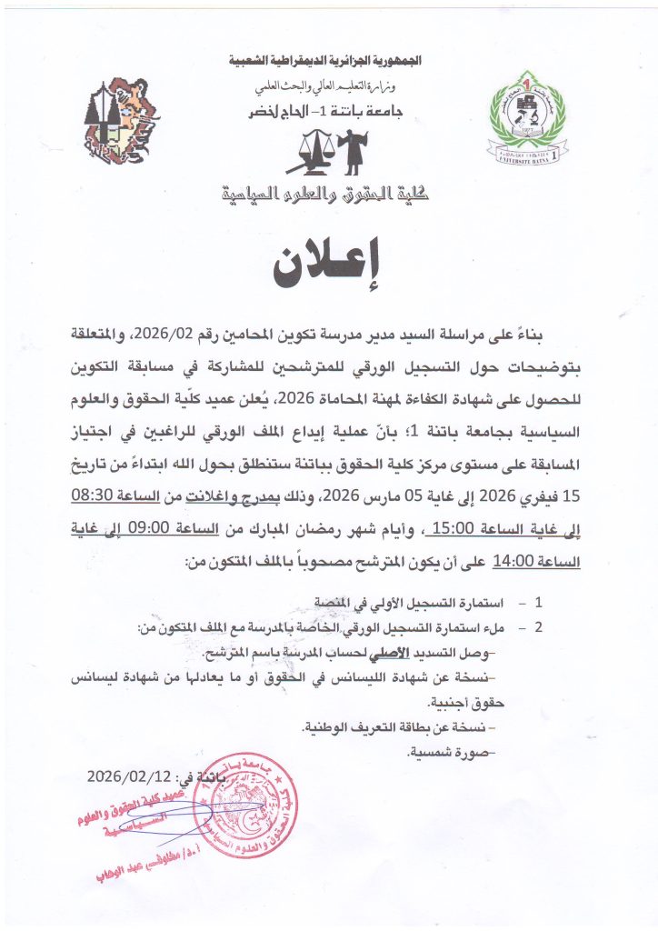 جـــــــــامعة بــاتنــــــة1